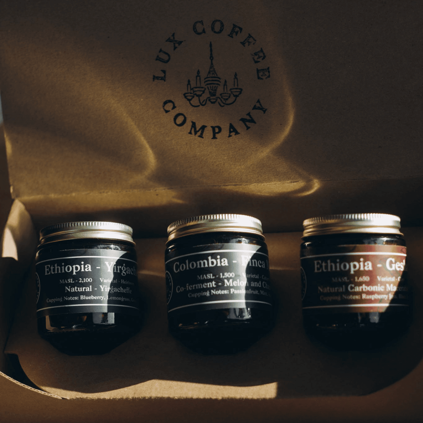 In this box you'll get three 50g doses of some really special coffee. A co-ferment from Colombia, a Gesha from Ethiopia, and a Yirgacheffe from Ethiopia.